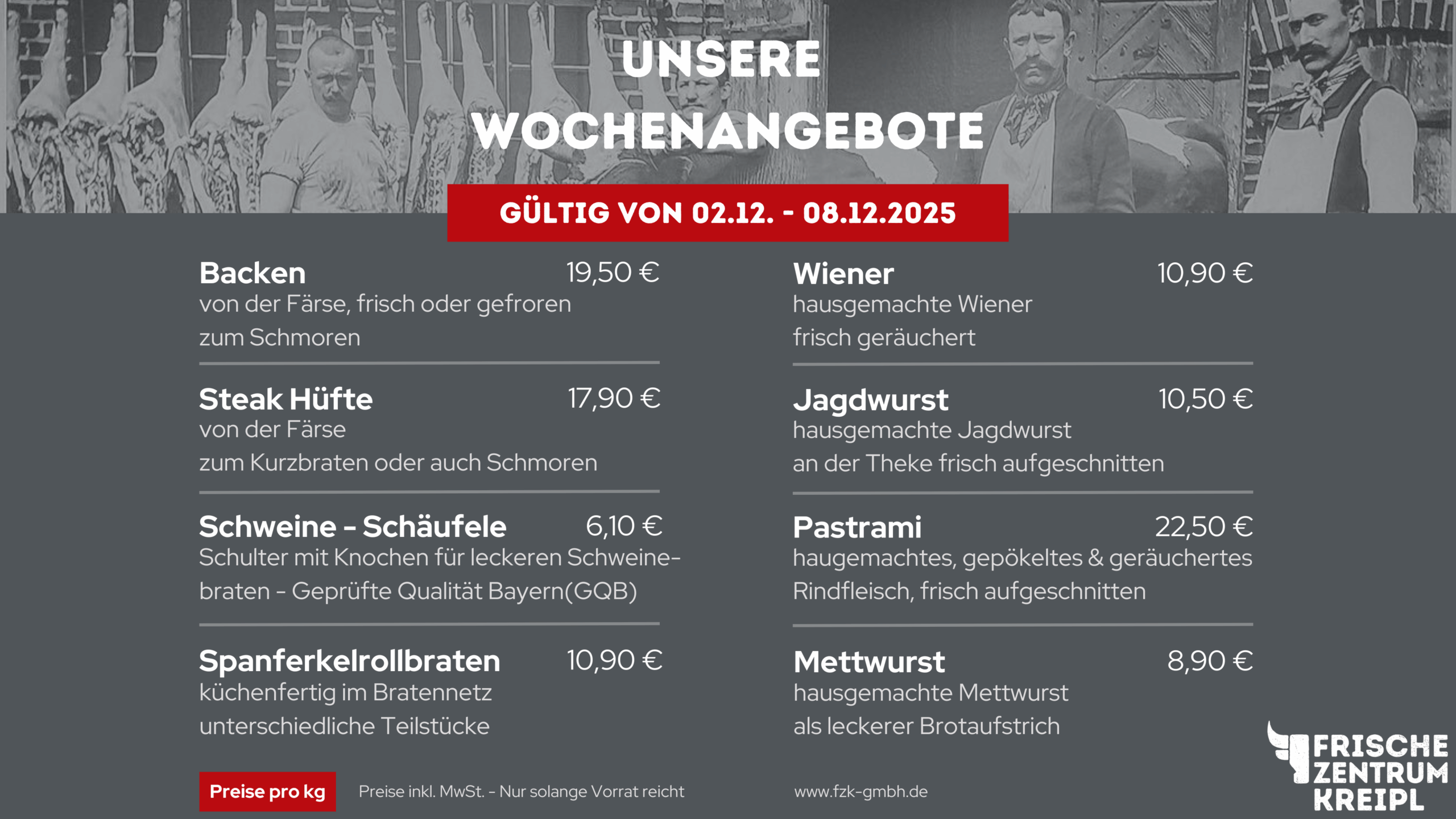 Als Frische-Zentrum-Kreipl sind wir ein familiengeführtes Unternehmen im niederbayerischen Atting-Wallmühle, das von der Rinder- und Schweinezerlegung über die Wurstproduktion bis hin zum Werksverkauf alles aus Handwerkshand anbietet.